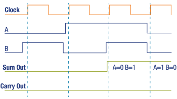 Figure 19b: Timing Diagram for the example Half Adder in a synchronous design above.