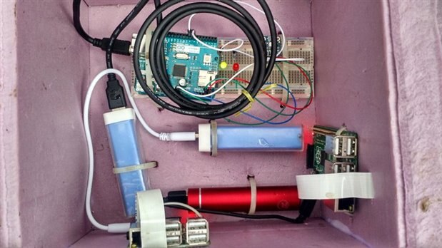 Today, in Lexington, IL we launched a balloon with some payloads on it. This was our first launch, so our payload consisted of a pair of Raspberry Pi cameras, and an Arduino with the BMP Pressure/Temperature/Altitude Sensor. Prior to the launch I tested the BMP sensor by taking it for a ride to the top of the Sears Tower.