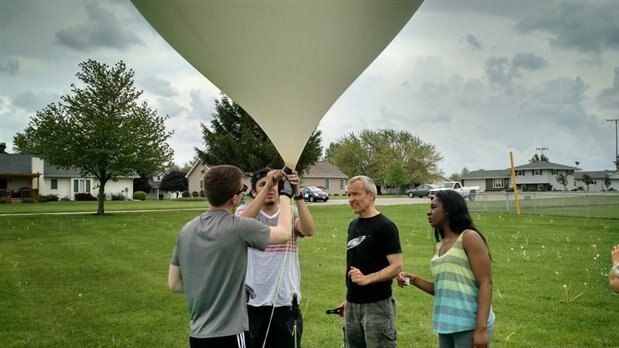 A storm was brewing in Lexington, so we had to hustle to get our balloon out in front of it. We used a 1600g balloon with about 14 pounds of lift for roughly 8 pounds of payload. (The FAA limits us to 12 pounds overall.)