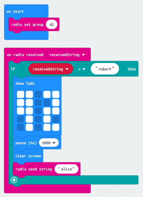 - The use the "on radio received receivedNumber" block - this looks very similar to the receivedString block.