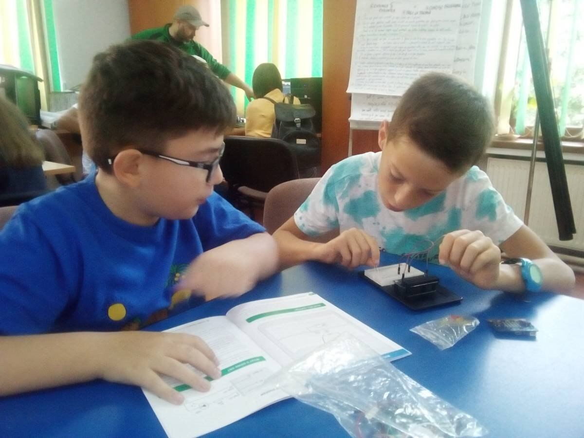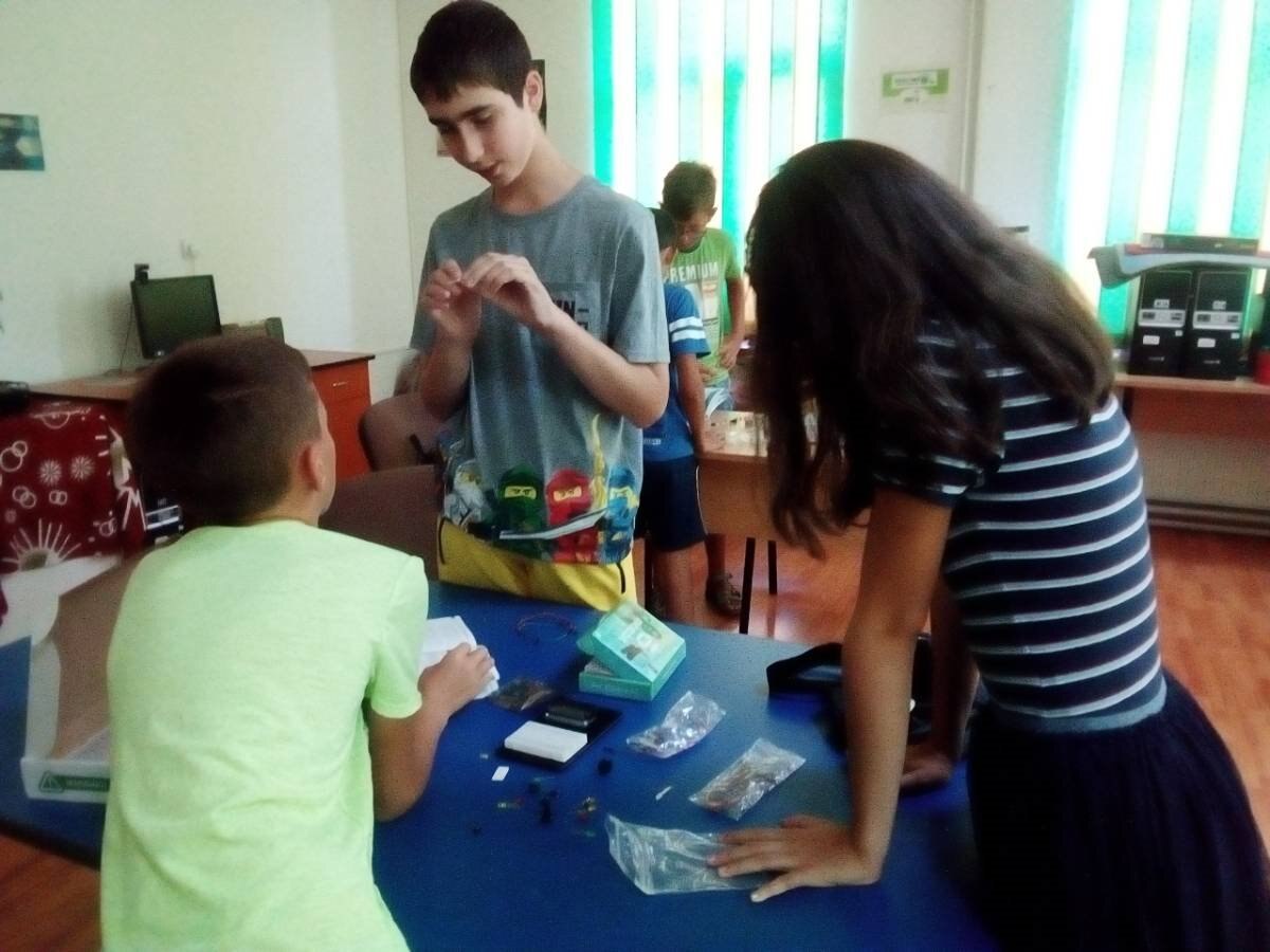 Then, we form two groups: the newcomers - who are introduced to micro:bit and kitronik and "the elders"