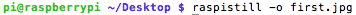 Next, I would like to try taking an image with the camera, just to see how it looks. RaspberyPi.org has a short list of terminal commands for the camera (https://www.raspberrypi.org/documentation/usage/camera/raspicam/README.md).