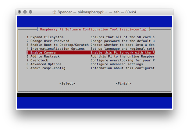 Referring again to RaspberryPi.org, let’s follow these directions for connecting the camera in software (https://www.raspberrypi.org/documentation/usage/camera/README.md).