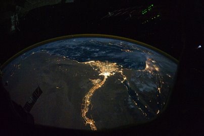 (Left) Cairo and Alexandria, Egypt at night. (Right) Aurora Borealis seen from the ISS (via NASA on both)