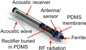 The cantilever beam is a ceramic based lead zirconate titante material, a piezoelectric (PZT)element. The sensor is about two centimeters long. Researcher even tested the device in a water-filled balloon to see if still worked, and the test was a success. To get this device powered you can use batteries or an external transmitter.
