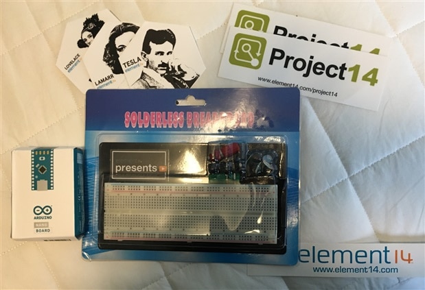 UPS delivered a bubble pack envelop this morning containing a breadboard and a Arduino Nano along with some sticker sundries. tariq.ahmad is on the mailing label. I'm not sure TA what I have done to earn such a gift? I felt it was important to say thank you, just the same.