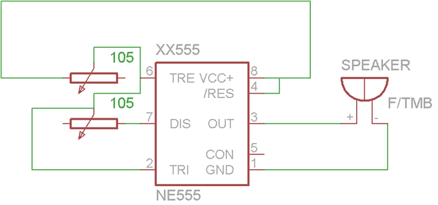 Second question: I need to make a circuit which outputs high-pitched blips (or continuous pulse) using 555 timer. I had this circuit diagram but I lost it.