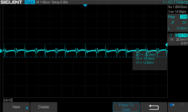 It's quite noisy, as Michael alluded to, and there is quite a large amount of ripple induced on the DC (datasheet states 25mV to 75mV) but it's on a breadboard without any great output filtering.  I still need to work through any impact this has on Side b (where the DAC and ADC are located.)  In theory, I would expect none as they are driven through I2C commands and the DAC is powered from a REF5040 which is used as the reference source for the DAC output.