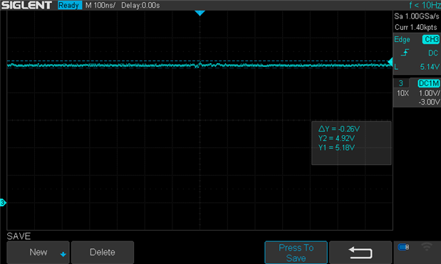 Powering side A, still with 0.1uf, 1uf and 10uf (electrolytic) capacitor on the output: