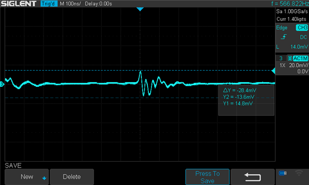 My PSU current restriction isn't fast enough. When I put it on 200 mA, the inrush still peaks at 1.025 A during 2 samples image