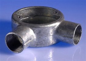 The question relates to the 20/25mm galvanised steel conduit often used in the UK - this comes as 3m lengths with a external make thread on one end and a female coupler on the other. Unless the fittings are 3m apart the conduit requires cutting and a new thread to be formed, which I already have tools for. The outlets/fixings also come with pre-cut threads; and example of the 90 degree box is shown below: