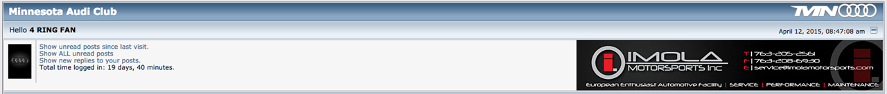 I'm a huge fan of Audi automobiles and have been a member of a local car forum http://www.mnaudi.com/ for many years. (Pay no mind to the total time logged in in the image below.) They are moving their hosting to a different system and the question has been posed as to whether or not to change forum software while they are at it.