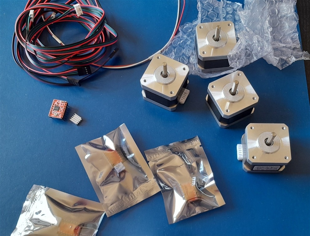 I did an investment. I had one driver IC and a good motor. I added 4 somewhat heavier motors, and 4 Allegro A4988 drivers.