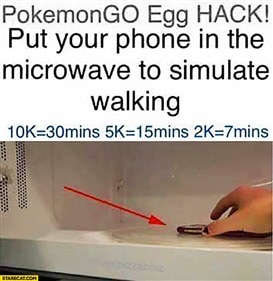 So What I'd like to challenge you guys with is coming up with a design for a machine, including the parts required, to artificially hatch a Pokemon GO egg. It'll need to keep your smartphone in motion at close to walking speeds, and move it enough far enough for the app to be able to monitor the distance via GPS; which could, location depending, be a bit of an inaccurate signal.