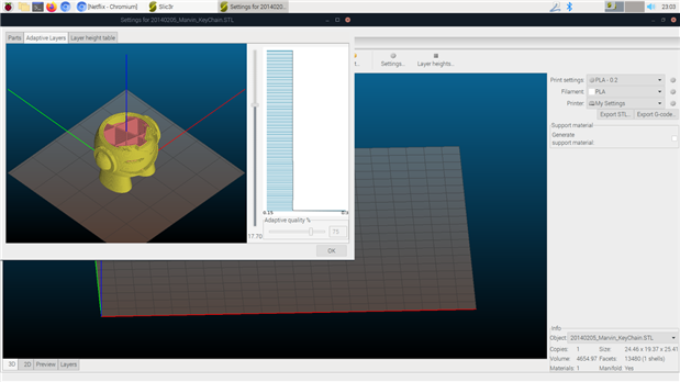 Today was the time I tried software to 3D print. I knew that the options weren't much, but they could possibly exist. Well, I've installed slic3r and it works. Let's slice a Marvin and see how it goes.