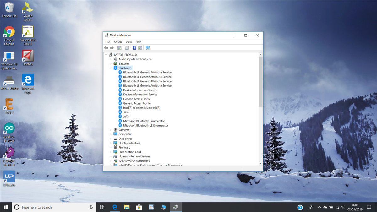 Despite getting it paired I was then unable to make any sort of connection to it. The Bluetooth link did not produce any sort of serial link or COM port number allocation, so the Putty terminal emulator I had hoped to use on my laptop was unable to make a connection. You can see from the screen dump that there are two JuTai Bluetooth links listed as I plugged in two working controllers and it was able to find them both and pair with them.