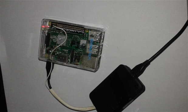 Reliez tout d’abord la sortie de communication du contrôleur à la pin du pin choisie pendant l’instal, et la sortie alimentation du contrôleur au port mini usb d’alim du Pi.