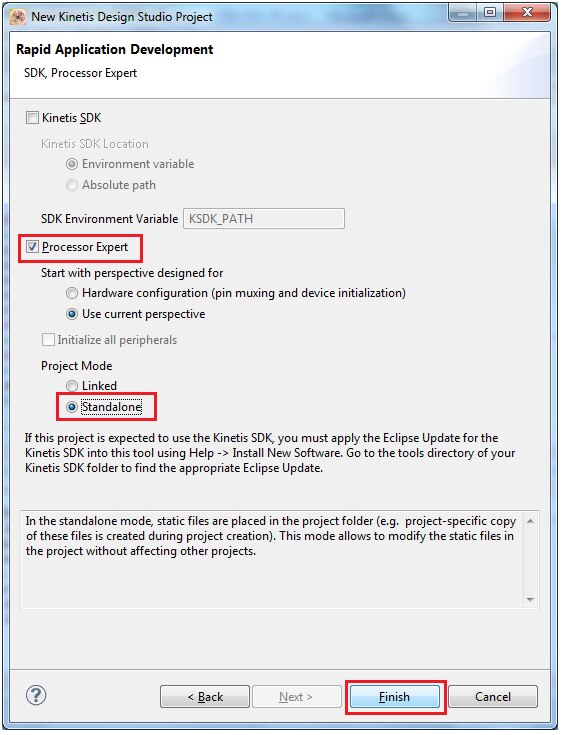 Make the selection of processor expert in standalone as shown below: