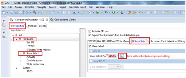 By clicking on slave select pin it prompts for LDDSS where you need to assign hardware pin PTE-4 as shown:
