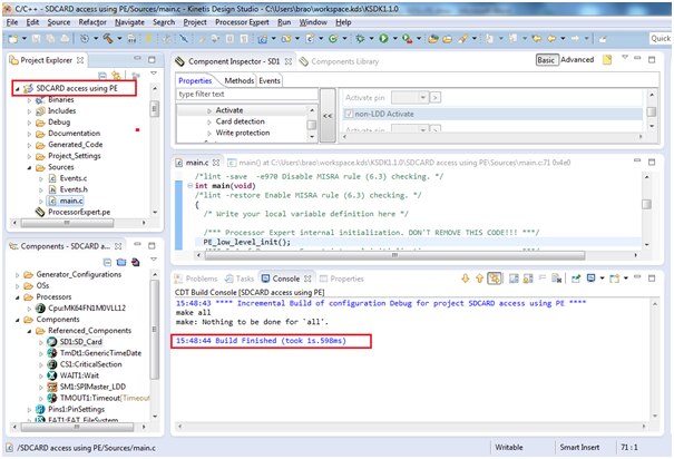 I have created a project by name “SDCARD access using PE”