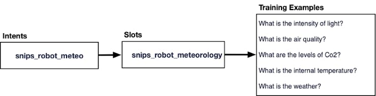 Within each of these intents a slot series was created, which allows the user to interact with the robot through Snips. Some of the slots designed so that the user can intellectually interact with the robot, these slots are described below (Figure 5, 6, 7).