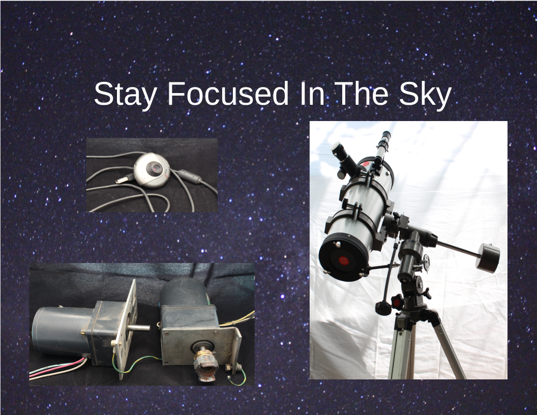 The main ideas is to use a manual telecope mount and some motors with an old webcam in order to make it automatic and follow the stars in the sky. The practical use will be to have stable platform for long exposure astrophotography.