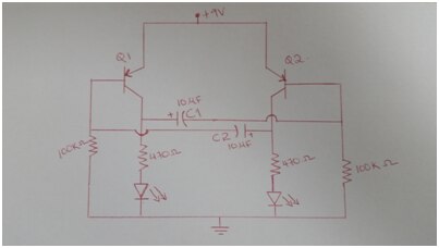 Get your “paper made” design. I’ll use a simple LED flasher based on transistors shown below: