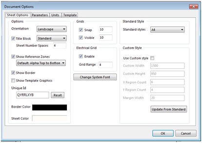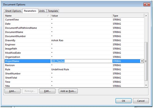 If you want to set other document parameters such as “drawn by”, “modified date” etc, go ahead and enter these as strings in the “Parameters” tab. If you want to set standard units to be used across the breadth of the schematic, set these in the “Units” tab. Once you are satisfied with exploring the options, hit “OK”. My document options look like this: