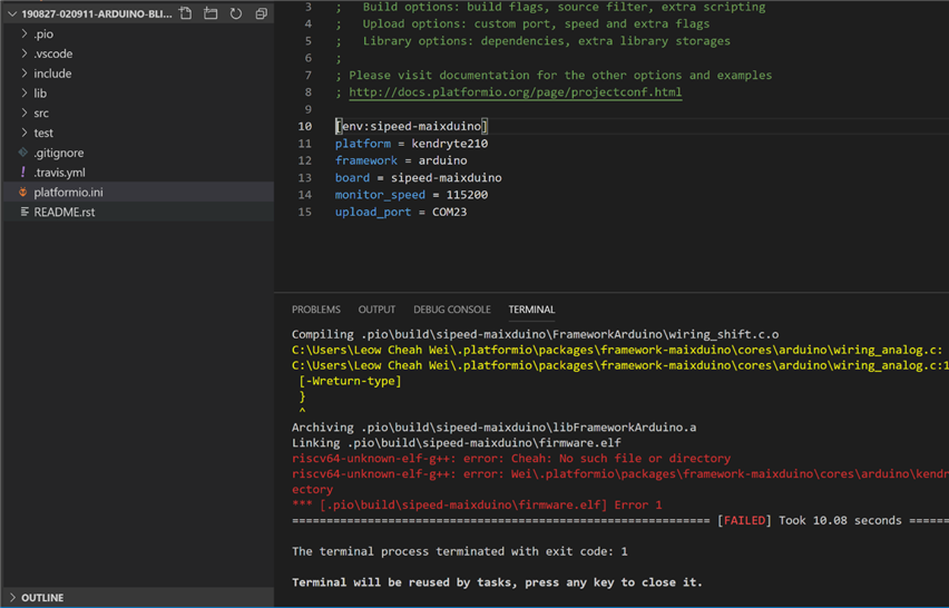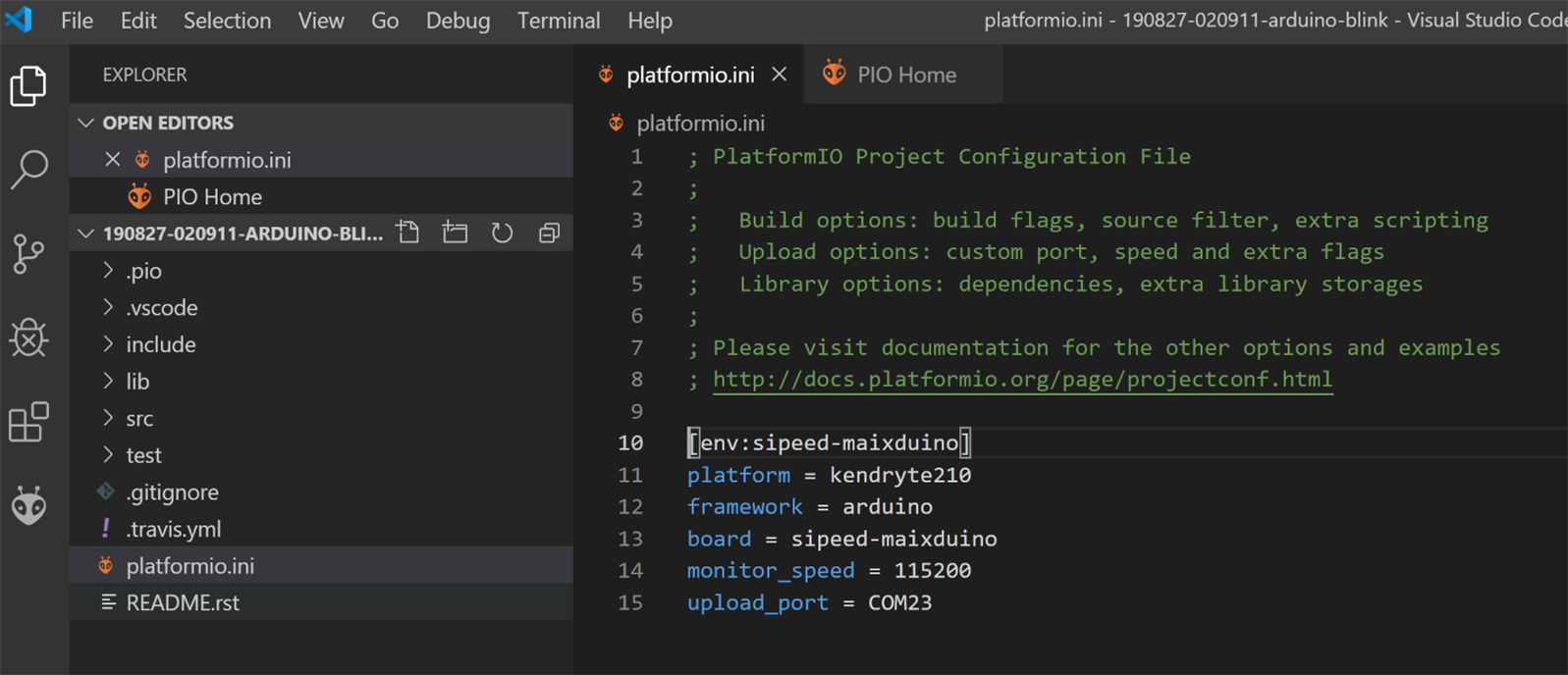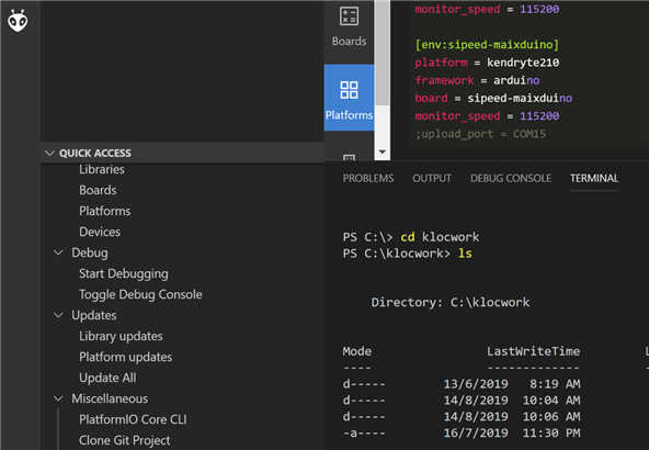 The first device i try with PlatformIO IDE is SiPEED maixduino. It is what known as AIoT, which means IoT device with AI technology. The device is powered by a Chinese chip Kendryte K210. It is a system-on-chip (SoC) that integrates machine vision and machine hearing. It can be deployed in the user's products in the shortest time, giving the product artificial intelligence.