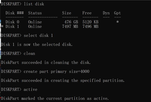 we need a > 4GB micro SD card. I use a 8GB micro SD. command as below is used to select my microSD, cleaning it and setting the partition to be active