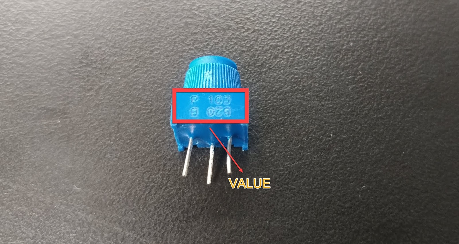 And the value of the potentiometer can be known from the side of the potentiometer whereby it will be engraved. The image below shows where we can get the reading.