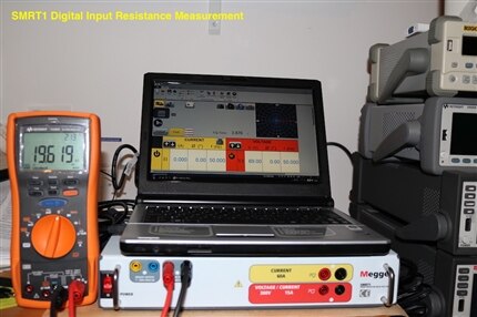 The digital input resistance measured with the ohmmeter was 19.6kOhms. A second check was made by supplying 5V into the digital input which gave a current of 1.97mA supplied into the SMRT1.