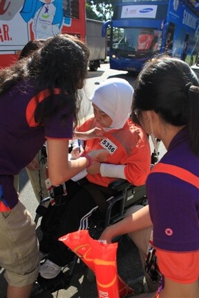 Here I was at Lamp post 77 waiting for the Youth Olympic Games Journey of Youth Flame! | Getting tagged "5356" just before the Flame arrives! |