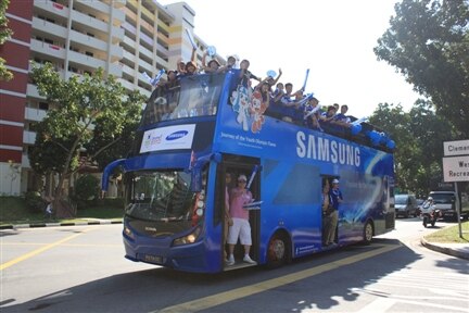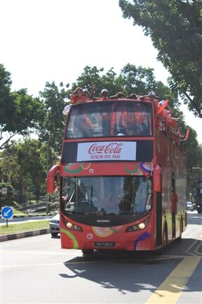 What's that commotion?! | It's the Coca-Cola bus blaring loud music and cheers from the supporters of the torch relay! Coca-Cola is one of the presenting partners for the torch relay. |