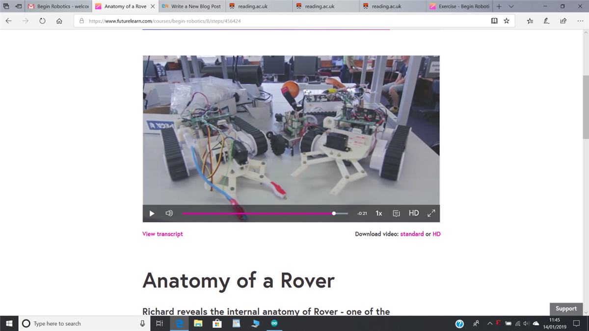 Week 2 of the FutureLearn Begin Robotics MOOC has now come and it contains some interesting material. The MOOC has many small steps (30 in Week 2) some with just written articles. some with short videos and some with demonstrations and exercises. The demonstration of using a H bridge to control a DC motor is good, see below: