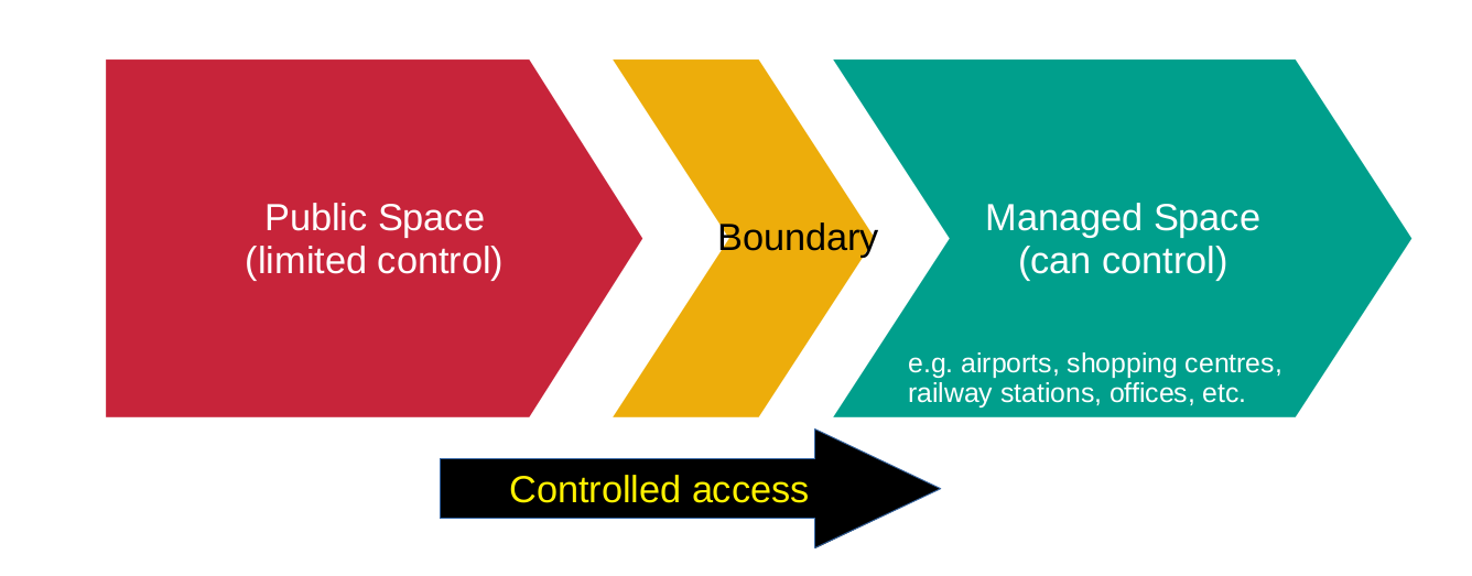 As you well know, it is in everyone's interest that the number of people entering a defined space is controlled to prevent overcrowding etc. It appears to me anyway that most managed spaces, such as restaurants and bars, have introduced various measures to control access which is aided by people counters, for example. This type of control is typically handled at the point of entry.