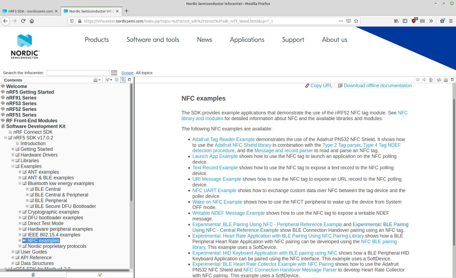 Looking at the NFC example folder, there are also some very useful examples to get started with.