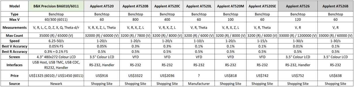 In being exhaustive, I’ve also compared the BA6010 to the Applent benchtop cousins. The results are very similar to that above in regards to the specifications, making the BA6010 a solid choice all-round especially considering that the majority of the Applent products use a VFD display and have more limited connectivity and lower accuracy.