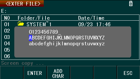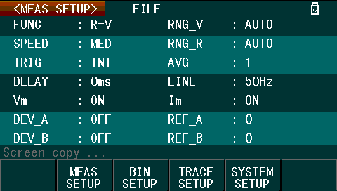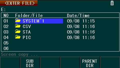 Screenshots can also be taken to external USB memory by the use of the “COPY” button on the front panel. This results in the screen being captured to a .GIF file, stored within the /PIC subdirectory of the USB drive. Unfortunately, each captured screenshot has the “Screen copy …” text obscuring any data present on the status line.