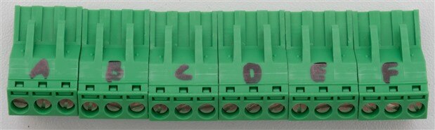 For my convenience, I used a permanent marker to label the terminal blocks for ease of connection. I then stripped some 28AWG ribbon cable and connected these to the terminal blocks in order.