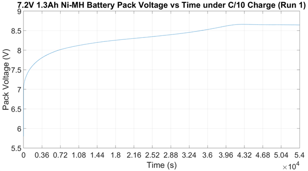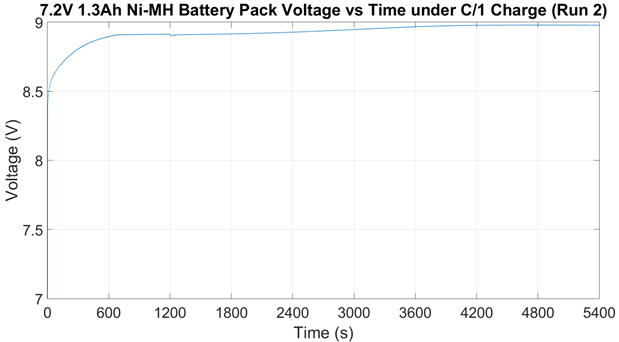 After that discharge run, I was hoping to charge the pack at a more rapid C/1 rate to observe a negative delta-V indication of full charge.