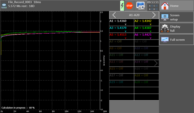 Otherwise, after creating the math channels, they must be manually enabled in the plot configuration so that they are shown, otherwise they are computed but not shown. Regardless, with or without these channels enabled, during logging, the “Calculation in progress” indication is shown in the bottom corner of the screen periodically, although with no observed ill effects.