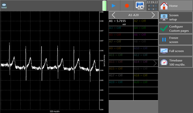 Battery life was tested with three different scenarios – logging with one channel enabled at the maximum sample rate and screen dimming set to one-minute, logging with all channels enabled at the maximum sample rate and screen dimming set to one-minute and logging with all channels enabled at the maximum rate with screen dimming disabled, screen brightness set to maximum and Wi-Fi connected.