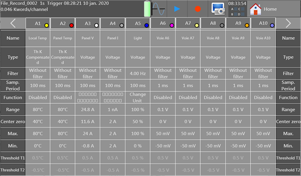 The unit did log the sine wave, however, the zoom on the unit itself is quite limited and the SeframViewer software uses no interpolation between samples, making it more difficult to interpret accurately (unlike sin(x)/x interpolation). Unfortunately, the DAS240-BAT does not seem to be capable of computing more complex mathematical functions on analog inputs – e.g. frequency or RMS amplitude. As a result, while high sample rates are available, the DAS240-BAT is still most suited to more “steady”, slower changing signals from sensors and transducers rather than AC signals.