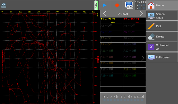 The logged data was then plotted in SeframViewer with some changed settings to enhance readability.