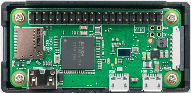 The remainder of the hub is a Raspberry Pi Zero-W, revision 1.1. As someone who has never managed to get their hands on any variant of the Zero, it’s quite a handy small board. It is screwed into the rear of the casing.