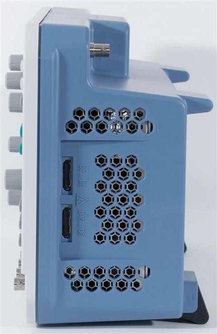To the left, it’s just vents, whereas the right side has vents as well as the two logic probe pod connections. Of the whole unit, this is probably the only slightly weak part, as pressing on the plastic near these connections results in an audible creak, whereas the rest of the case is practically solid.