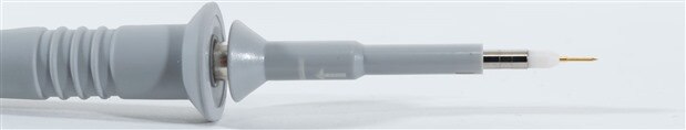 The probe itself feels solidly built with a thin and comfortable-to-use shaft. The tip itself has a wonderfully sharp tip, making it a joy to use for closely spaced connections and has a springy feel which makes it easier to keep the probe precisely positioned when holding it by hand. The shaft also has a marking to inform the user as to how far they need to push the pincer tip to get it to click into place.