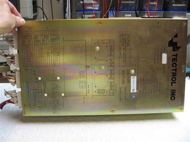 As long as I can remember one of my favorite activities is salvaging electronic components from unused equipment and circuit boards. Recently I took apart a large piece of medical equipment and found myself with a 900 Watt Tectrol Switching power supply. This power supply is a beast with two 5 volt outputs rated at 15 Amps and 38 Amps respectively. It also has plus and minus 12 volts supplies of 15 amps and 10 amps each as well as plus and minus 24 volt supplies with 13 amps on the plus and 3 amps on the minus.