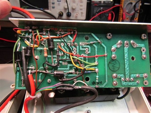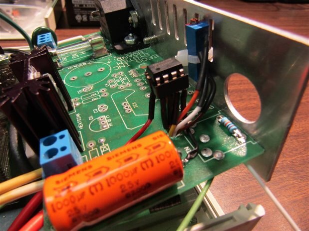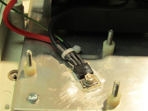 The power supply MOSFET was attached to an Aluminum base plate in the unit and the relay trigger MOSFET was mounted on a heat sink left from the original cure light circuit.